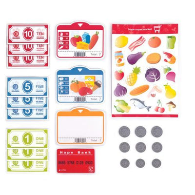 Learn how to manage money with this fantastic cash register! Select your groceries then work out the price! With a solar-powered calculator, a scanner with light and sound effects and coins and notes to keep in the opening drawer.